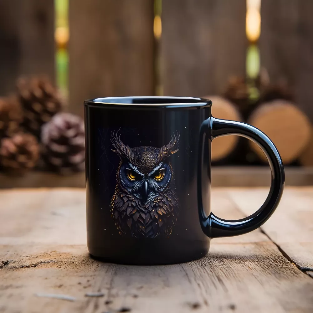 Angry Owl Coffee Mug for Husband - 11oz Black Ceramic Beer Cup