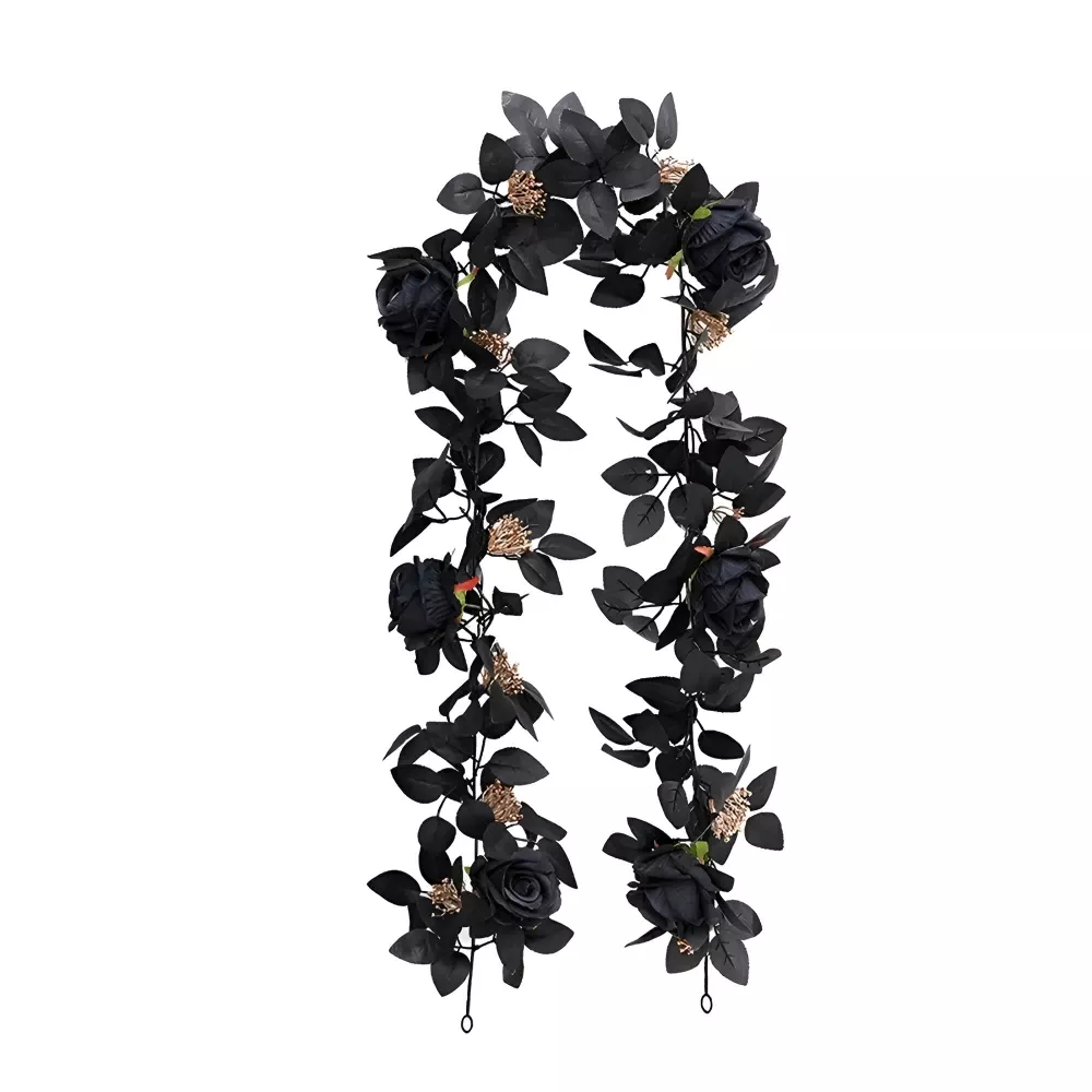 Black Halloween Rose Vine Garland with Realistic Artificial Flowers 69in