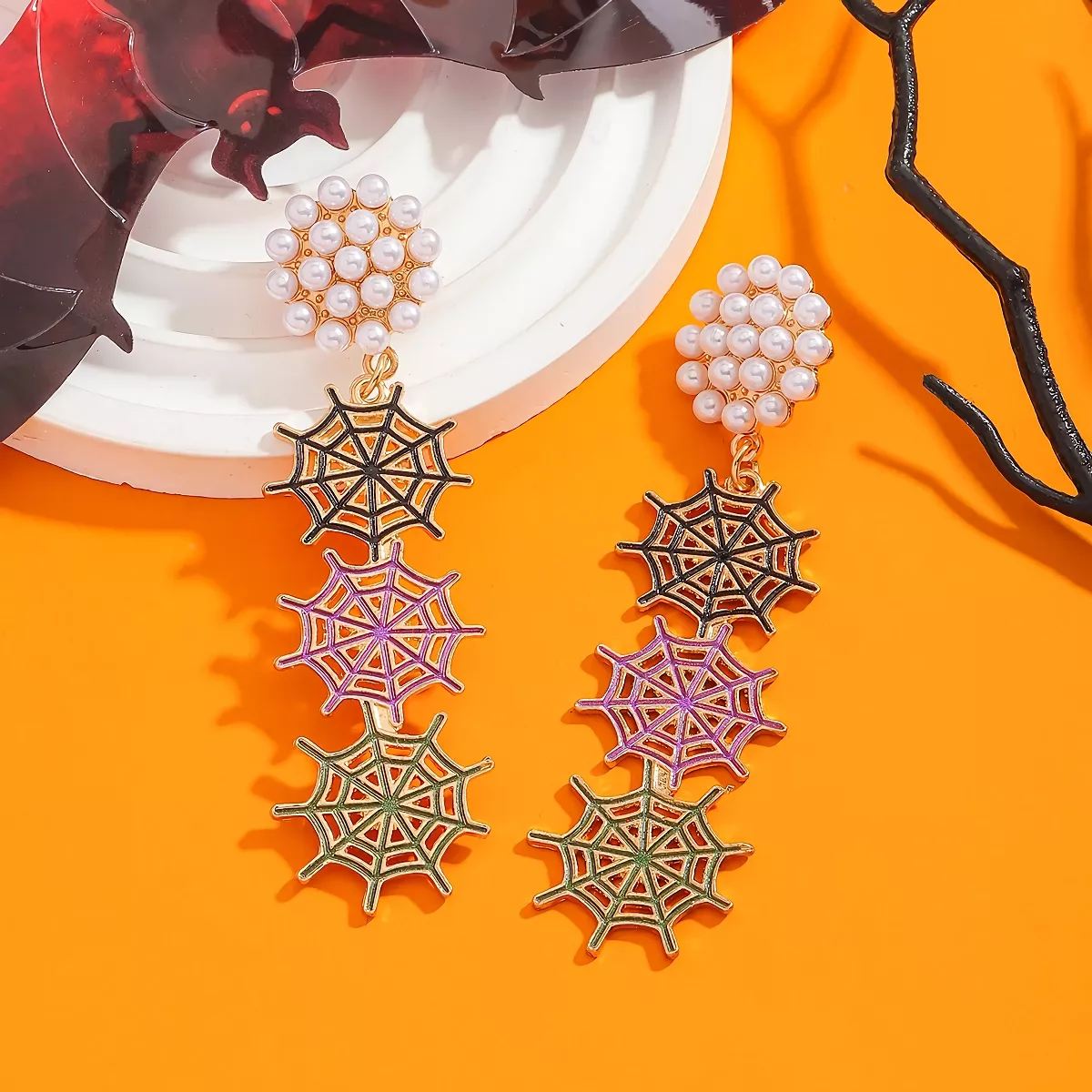 Halloween Spider Web Pearl Dangle Earrings for Women - Festive Costume Jewelry